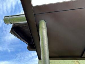 Im hinteren Bereich erhielt das Dach ein Blindfeld mit Aluminiumpaneelen passend zu Konstruktion beschichtet, um das Fallrohr des Hausdaches durch zu führen. Somit konnte das Terrassendach bis zur Hausecke ausgeführt werden, ohne das Hausfallrohr verlegen zu müssen.