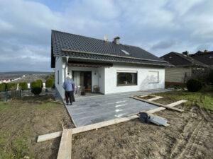 Nach Abschluss der Arbeiten können die Kunden Ihre neu angelegte Terrasse nun auch an wechselhaften Tagen unbesorgt genießen.