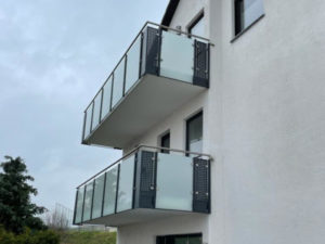 Außerdem wurden die Geländerverglasungen über die Balkonkragplatten hinausgeführt, so dass diese optisch verdeckt werden und somit ein sauberer Abschluss entstanden ist.