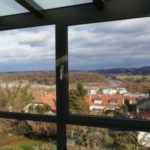 Auf Grund der Lage im Obergeschoss, wurden auf der rechten und linken Seite jeweils zwei Dreh-Kippfenster und in der Front drei Dreh-Kippfenster vorgesehen, somit können auch die festverglasten Elemente außen problemlos von innen gereinigt werden.