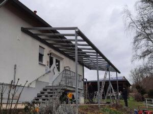 Anschließend erfolgte die Montage der Überdachung, welche auf der rechten Seite mit einem freitragenden Überstand über die Hausecke ausgeführt wurde.
