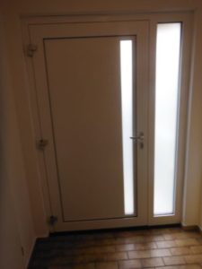 Wunsch der Kunden war es, die vorhandene Tür durch eine hochwärmegedämmte Haustür zu ersetzen, welche außerdem den neuesten Sicherheitsstandards entspricht.