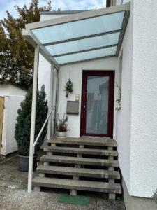 Moderner Wetterschutz mit Stil: Hauseingangsüberdachung in RAL 7032 mit Edelstahlhandlauf in Kassel
