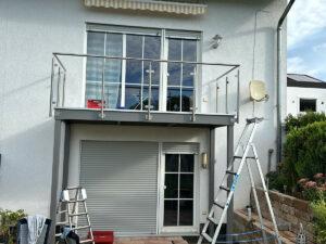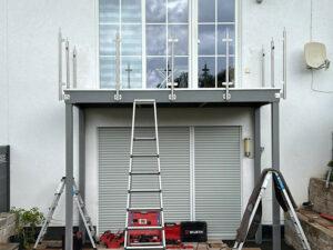 Wunsch der Kunden war es, den vorhandenen Holz-Anbaubalkon durch eine neue, pflegeleichte Konstruktion zu ersetzen. Hierfür wurde die vorhandene Holzkonstruktion zunächst demontiert.