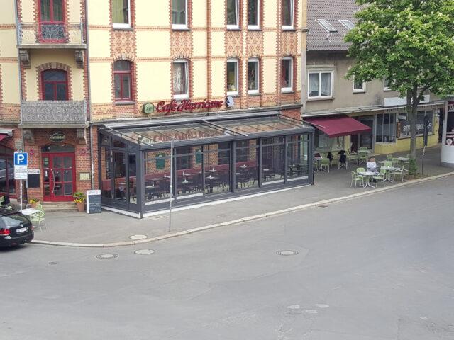 Als ausführendes Handwerksunternehmen haben wir beim Café Hurricane in Kassel einen modernen Wintergarten zur Gastraumerweiterung realisiert. Der neue Wintergarten wurde mit wartungsfreiem und witterungsbeständigem Aluminiumrahmen ausgestattet, der sowohl Stabilität als auch eine lange Lebensdauer garantiert. Das verwendete Wärmedämmglas sorgt für eine angenehme Raumtemperatur zu jeder Jahreszeit, während das zusätzlich integrierte Verbundsicherheitsglas die Sicherheit der Gäste gewährleistet.